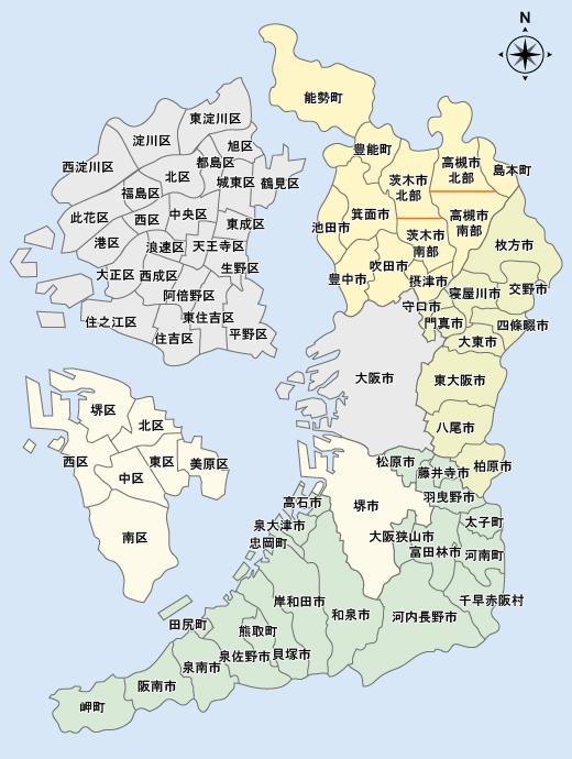 池田・箕面・茨木・高槻・枚方・寝屋川・四条畷・藤井寺・柏原・羽曳野